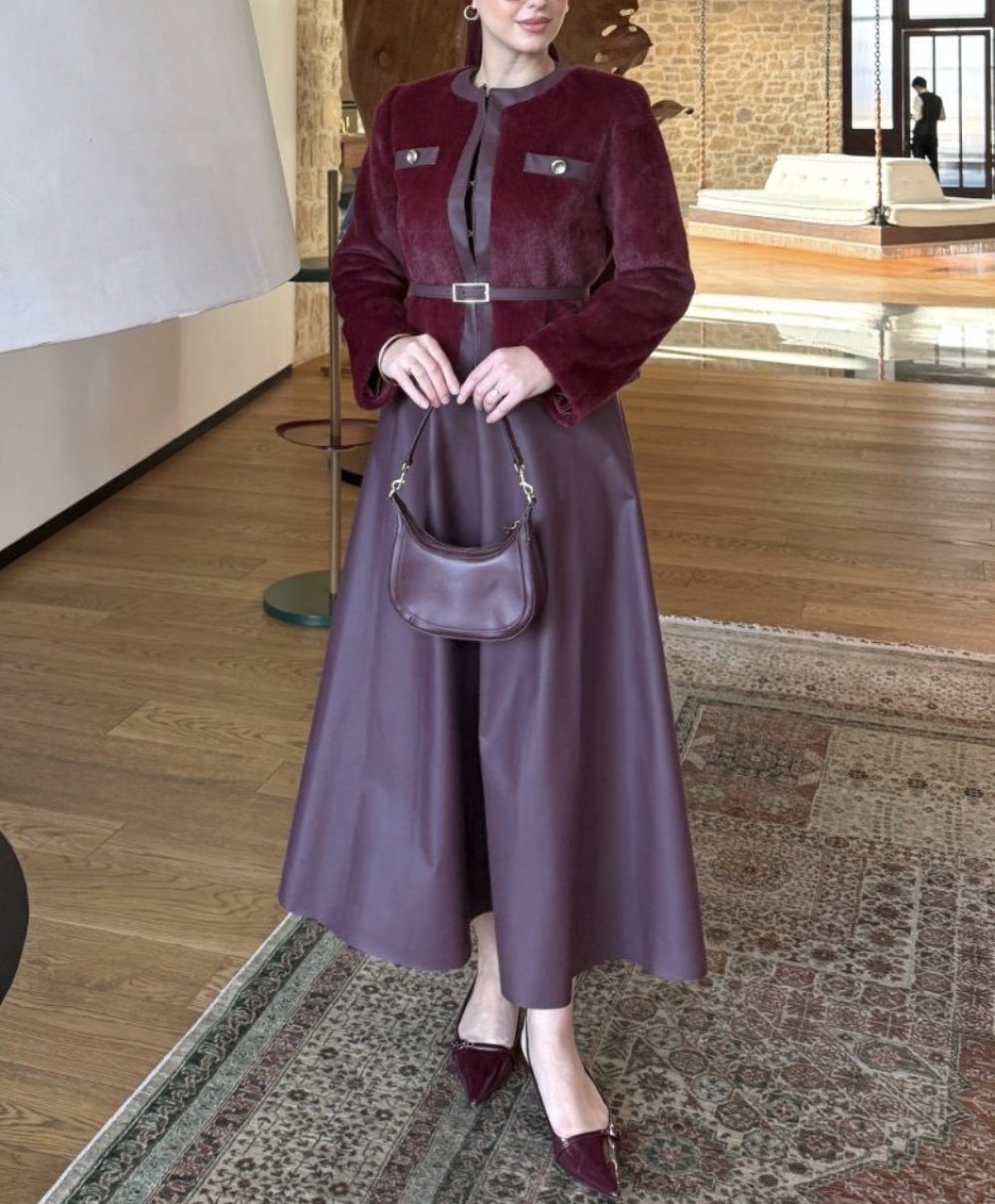 Elçin Etekli Takım Bordo