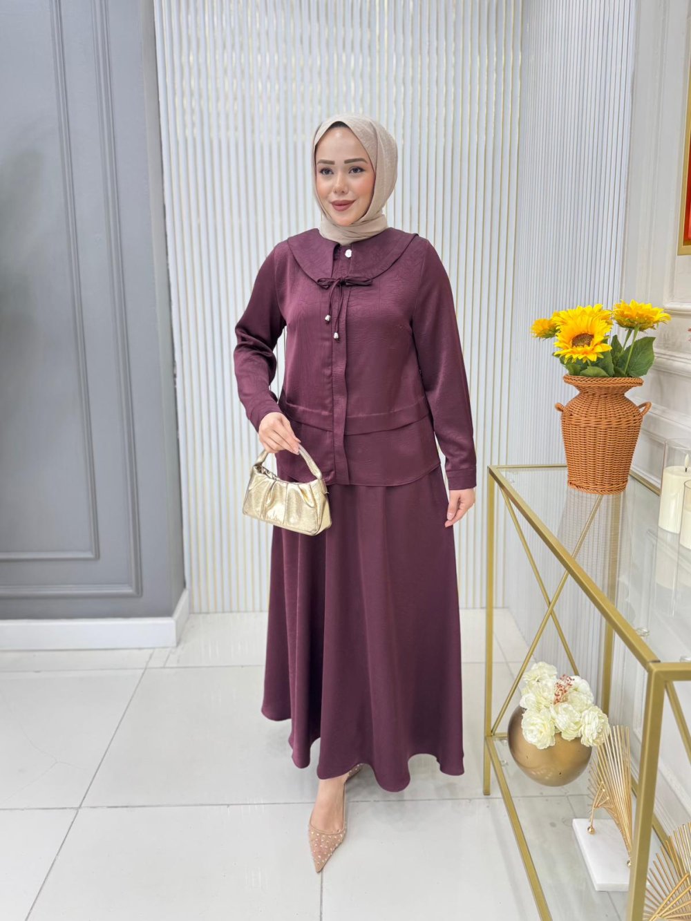 Elçin Etekli Takım Bordo