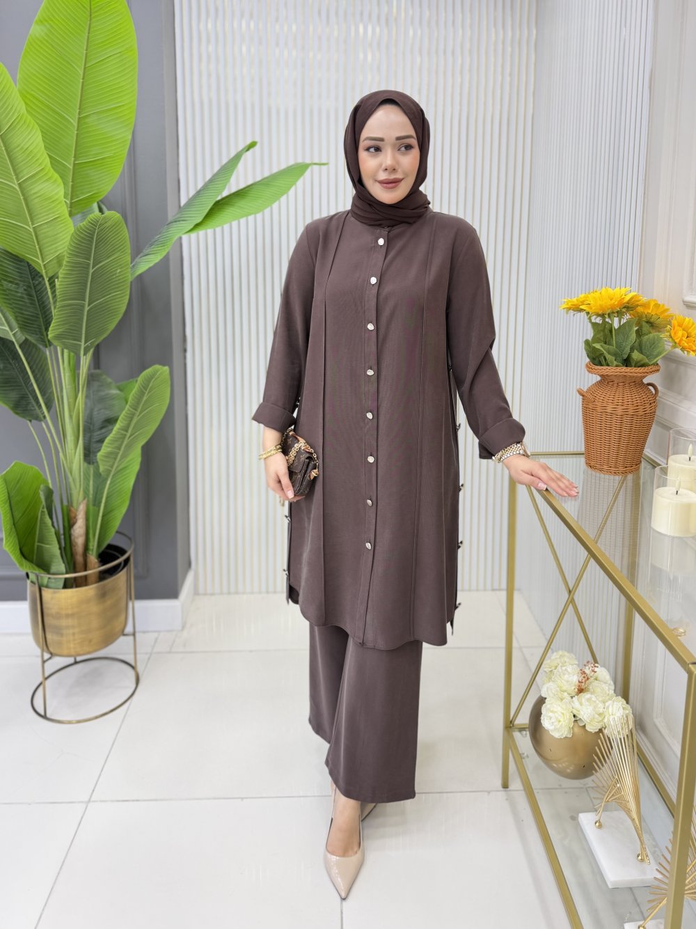 Sakine Tunik Takım Kahverengi