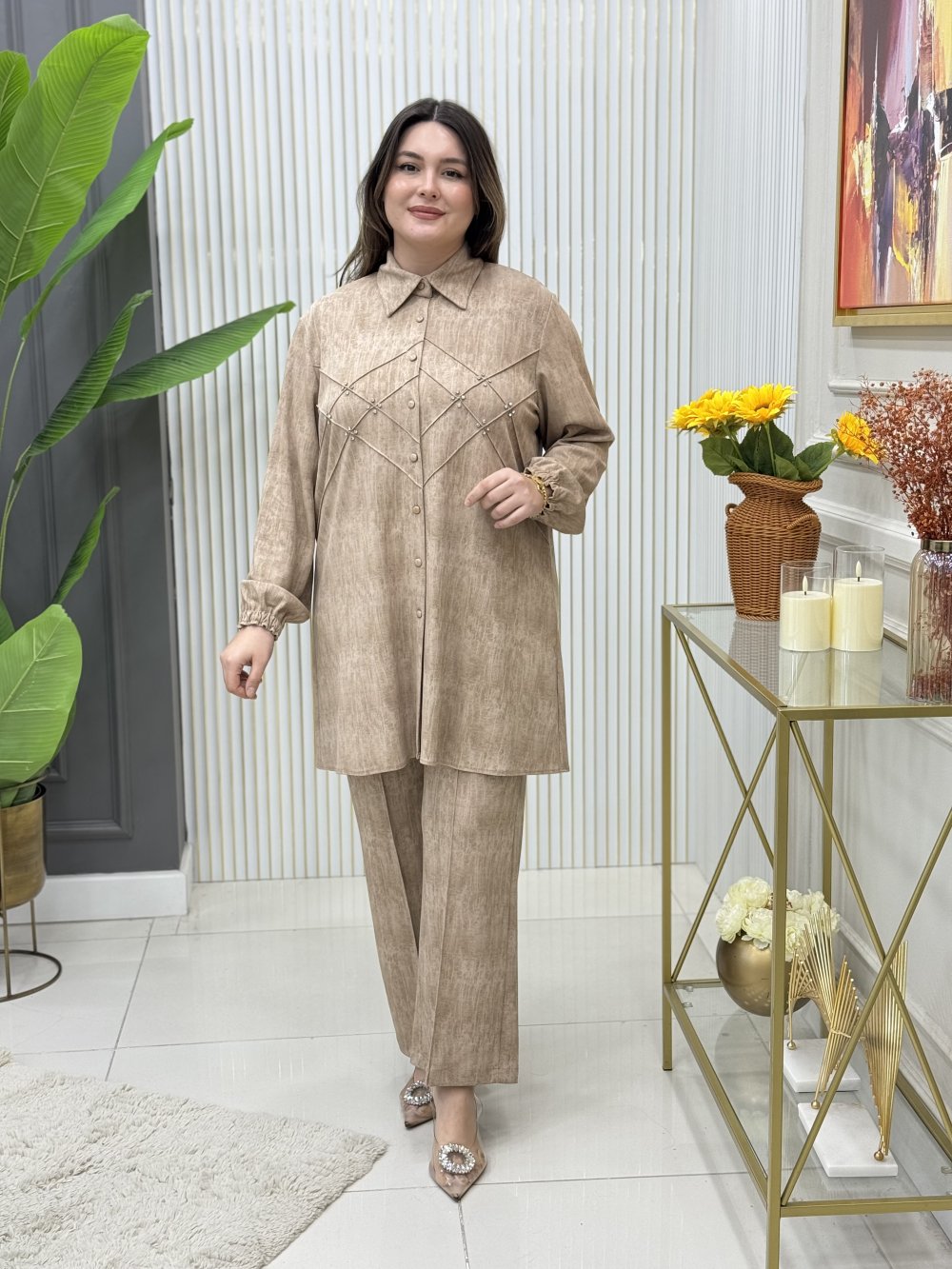 Selin Tunik Takım Krem