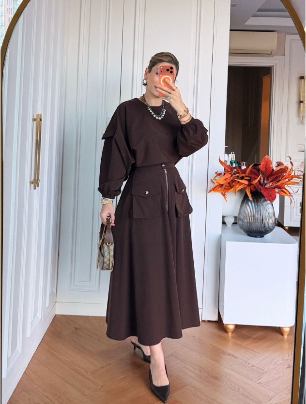Takım Etek Tam Boy Fermuar Detaylıdır.
